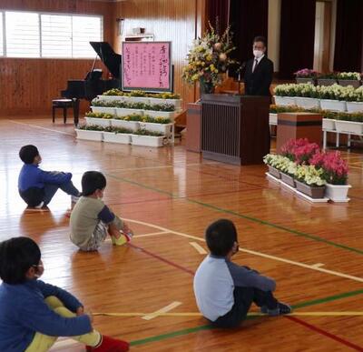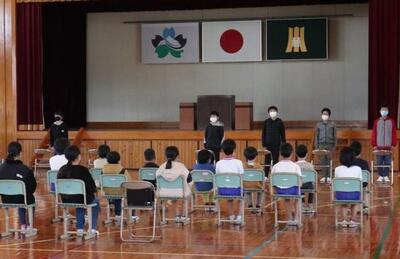 新任式と1学期始業式が行われました。着任された内藤博文校長先生は、始業式に①「はいっ」と元気な返事②人と人をつなぐコミュニケーションである「あいさつ」③心も整う「はきものをそろえる」を目標に頑張りましょうと3つの目標の話をしてくださりました。そして、代表児童の作文では新4年生が「お手伝い」を頑張りたい等、今年の目標を堂々と発表しました。また、生徒指導担当の津乘先生は「あ」「い」「さ」「つ」の頭文字につなげた挨拶の姿勢について話をされました。新しい教科書、新しい教室、ドキドキワクワクの1日だったでしょう。さあ、2~6年生30名スタートです!