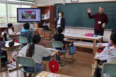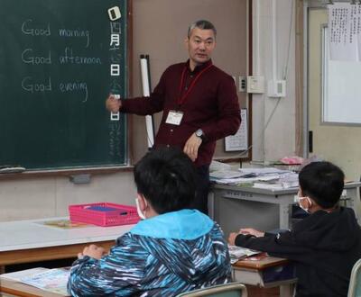 4月から新しく来られたALTのスフバトエンフタイワン先生との学習が始まりました。優しく丁寧に何度も単語の発音を教えてくださったり、ゲームを通して楽しく学べるよう考えてくださったりして、子どもたちはすぐに先生のことが大好きになりました。エンフタイワン先生 1年間どうぞよろしくお願いします。
