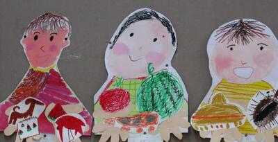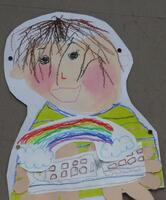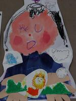 1・2年生が図工の時間に、自分の顔と手のひらの上に好きな物を描きました。上手に描けていて、とっても可愛らしいです。保護者の皆様は、4月参観日で是非、実物をご覧ください。