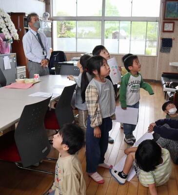 2年生が1年生に麓小学校の教室を紹介する生活科「学校探検」でした。職員室では、教頭先生の席に座り、受話器を持ち、お仕事体験をしました。校長室では「どうしてこんなに写真があるの?」「ええ!みんな校長先生!?」と、歴代の校長先生の写真がたくさんあることに驚いていました。2年生の教室説明をしっかりと聞いていましたよ。1年生も麓小にどんどん慣れていきます。