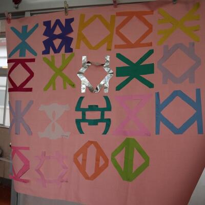 この飾りは、全て線対称です。6年生算数の学習で学び、色紙で形作り(飾り)をしました。イベントをする時などの飾りつけ等でも活用できそうです。
