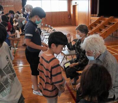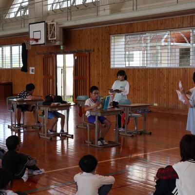 令和5年度の人形浄瑠璃伝承活動が始まりました。本日は、保存会の方々、都城市山之口支所地域生活課の方々の御協力のもと、開講式が行われました。自己紹介では、子どもたちが浄瑠璃の練習にかける意気込みを語りました。そして、初めて人形を操る5年生のために、保存会の先生方が、人形を使ったあっち向いてホイを教えてくださり、楽しい活動でした。3月の発表会に向けて、練習を頑張っていきます。