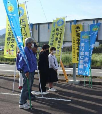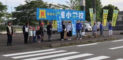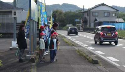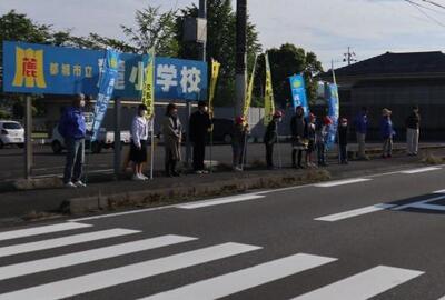 本日も小・中合同あいさつ運動が行われました。今日は、道路際に立ってあいさつすることに加えて、登校班が通る場所へ移動をして、登校班へ元気なあいさつをしました。参加した児童が、「自分からすすんであいさつする練習になりますね。」と笑顔で話てくれました。快晴の下、さわやかなあいさつの声がひびきます。