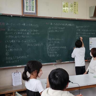 麓小(麓っ子)の課題に対する目標は「あいさつの声を大きくしよう」「すすんであいさつをしよう」です。そこで、5,6年生が学級活動で話し合いを行いました。1~6年生全員が、楽しく、意欲を高められるあいさつ運動はないか活発な意見交換がなされました。自分たちの目標をしっかりと分かっているからですね。子どもたちのアイディアで改善をめざします。