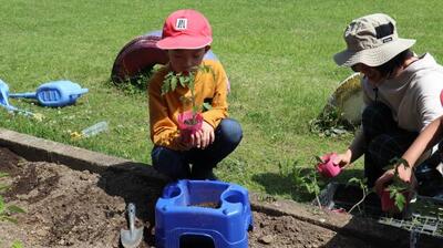 暑さを感じるお天気です。2年生は生活科で「ミニトマト」の苗を植えました。苗を植え替える時には、苗を優しく扱っていましたよ。植物のお世話をしっかりとする2年生です。ミニトマトが元気に育つでしょう。