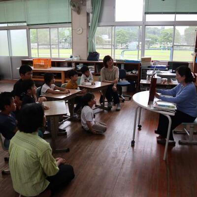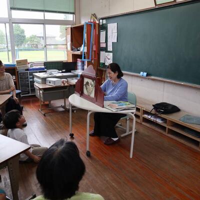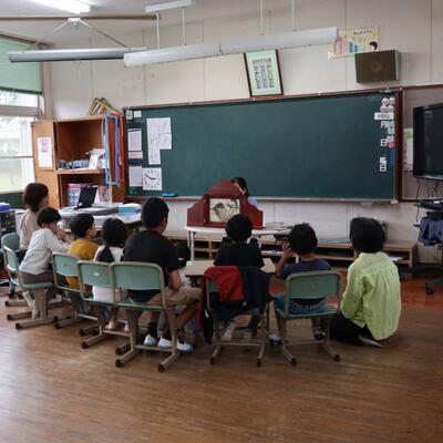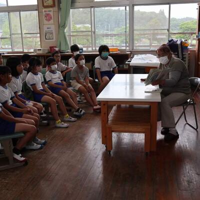 令和5年度も地域読み聞かせボランティアの方による読み聞かせがスタートしました。毎回、季節や行事にちなんだ本や昔から伝わる昔話紙芝居を選び、子どもたちに読み聞かせをしてくださります。今日は、「つばめの巣作り」「山之口の民話」「昔話」等でした。子どもたちは静かに聞き入っていました。雨の中来校して下さり、本当にありがとうございました。