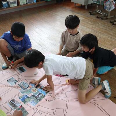 2年生は生活科の町探検をいかして、町の絵地図作りをしていました。歩いて、見つけたことを、地図に表すのは難しいですね。麓地区にはどんなものがあったでしょうね。