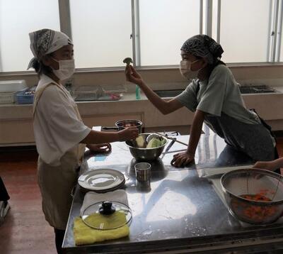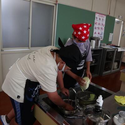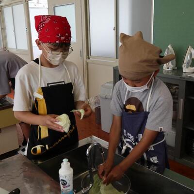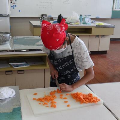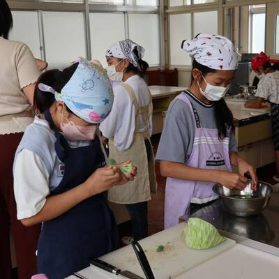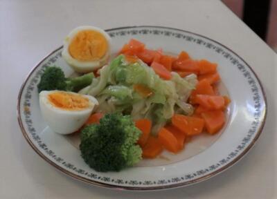 5・6年生は家庭科の調理実習でした。「ゆで野菜サラダ」を作りました。ゆで卵もそえて、彩りよいサラダができました。自分たちで作ったサラダをおいしくいただきました。