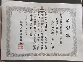 また、この人形サークルは、昨年度の都城市教育委員会精励賞を受賞しています。