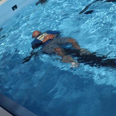 水泳の授業真っ最中です。本日は「着衣泳」を行いました。