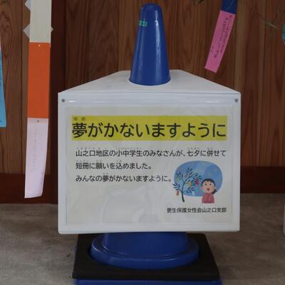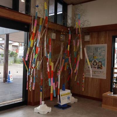 新しくなった山之口駅の駅舎に更生保護女性会山之口支部の皆様が山之口小・中学校4校の子どもたちの七夕の短冊をかざってくださりました。一人一人様々な願いがあるようです。山之口駅に立ち寄られた方は、どんな願いや夢があるか御覧ください。