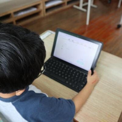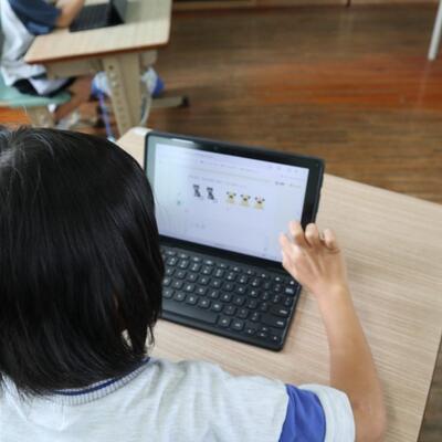 1年生は10までのたし算・ひき算を学習しました。お勉強がどんどんと進んでいます。これまで習ったことの復習や、さらに力をつけるために、タブレットでドリル学習を頑張りました。操作ボタンに1年生には難しい言葉が表示されても、へっちゃらです。タブレットをどんどん使えるようになるでしょう。