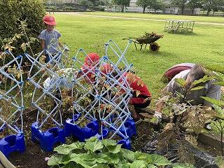 今朝のボランティアは、学校園や学級園の草取りでした。みんな一生懸命に草取りをしていました。