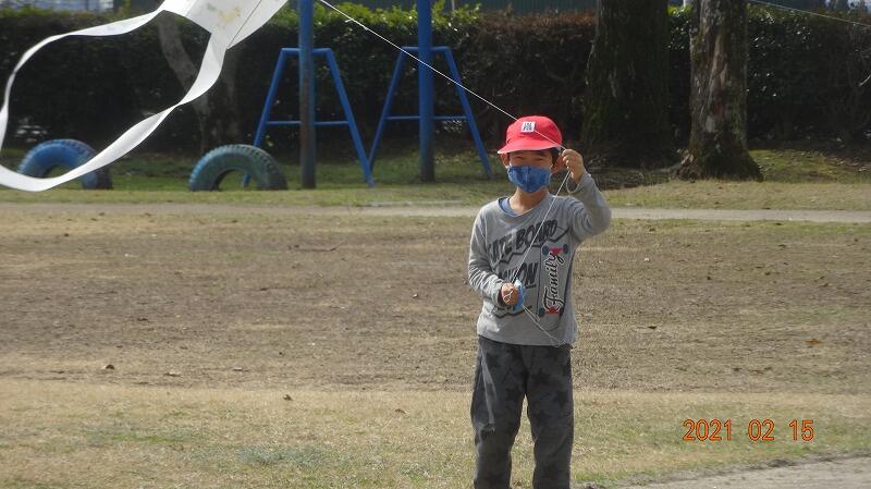 1年生は、生活科の学習で凧揚げを行っていました。今日は、西風の強い日でなかなか思い通りに凧をを操ることが難しいようでした。それでも、だんだんと慣れてきて空高くまで凧を揚げていました。