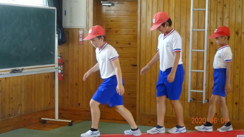 久しぶりに体育館に全員集まっての集会活動を行いました。普段よりもお互いの間隔を広く取り整列しています。今日は、6月4日「むし歯予防の日」です。養護教諭から正しい歯みがきの仕方を学びました。