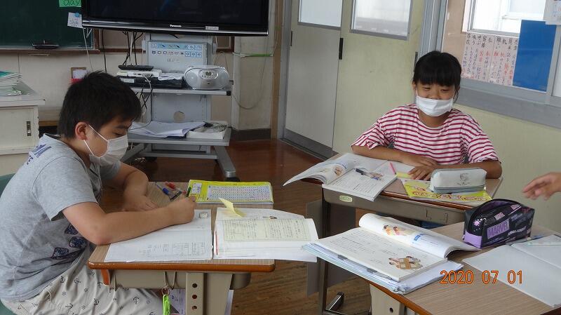 3人一組になって、5・6年生がグループ学習を行っています。意見交換しながら、考えを一つにまとめていきます。相手の考えを聞きながら、自分の考えをまとめることは、今後も大切になっていきます。