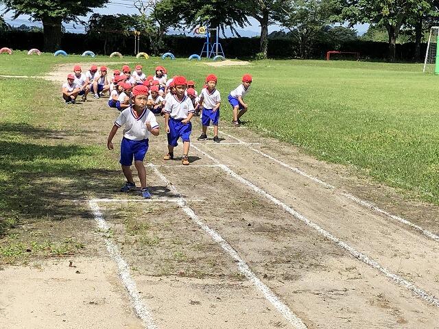 梅雨明けしたら夏本番。今日は、熱中症に気をつけながらの運動場での体育でした。運動会に向けて、リレーの練習を行いました。追い越したり追い越されたり、一人一人が一生懸命に走っていました。