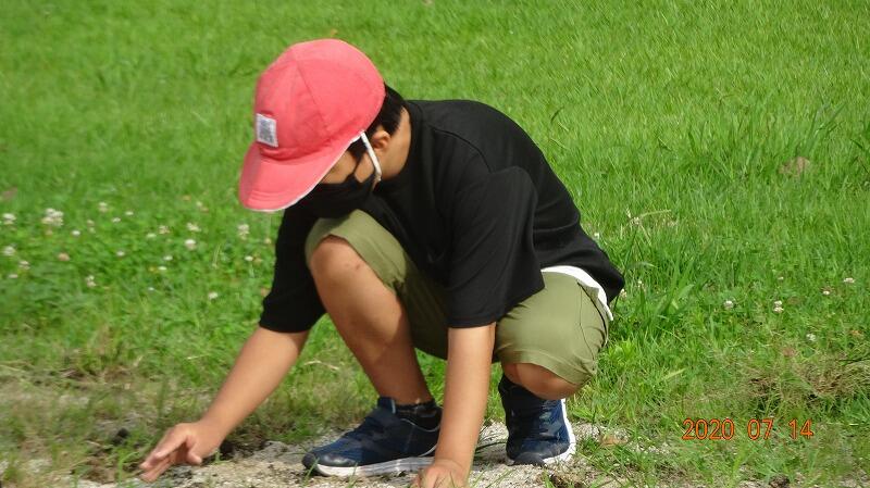 3・4年生は、総合的な学習の時間でお米の生育の観察を行っています。昨日、田んぼに行って観察すると、ジャンボタニシの卵を発見しました。そこで、今日はどのようにして卵を退治するか方法を考えています。