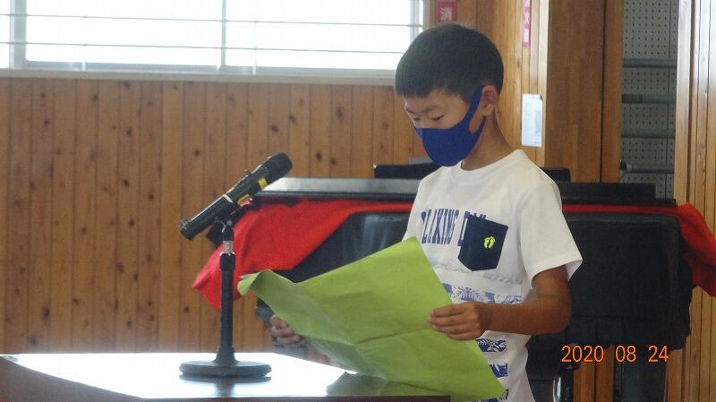 今年の夏休みはコロナウイルス感染症の為に例年により短い夏休みになり今日から2学期が始まりました。始業式では、二人の児童に2学期の豊富を発表してもらいました。2学期は、運動会等様々な行事があります。どれも、予定通りに実施できることを願っています。