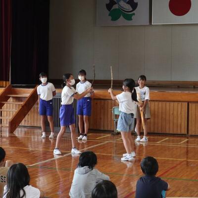 小林秀峰高校より体育の永野護先生にお越しいただいて、先生とのマット運動の学習が始まりました。今日は、前転運動の基礎となる手の付き方やマットに接する頭の部分を1つずつ確認しながら学習しました。次の技にそなえるために、足はそろえて立てるよう、帽子を股にはさみ、落とさないように前転してみる等、分かりやすく教えていただきました。これから、6時間程学習が続きます。子どもたちの技の習得が楽しみです。