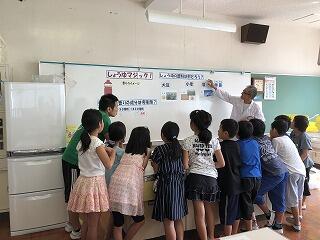 3・4年生、5・6年生と2回に分け、しょうゆの香り、しょうゆの原料と作り方、発酵、味見を体験しました。日本に昔から伝わるしょうゆ、日本の味のもとにもなるしょうゆのすごさを感じた子どもたちでした。