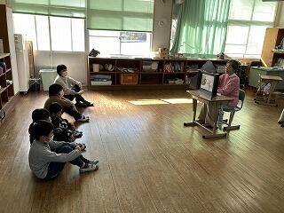 毎月1回行ってもらっている読み聞かせが、本年度最後となりました。今日も、学年に応じて紙芝居や絵本・物語などでした。子ども達は、みんな集中して聴き入っていました。1年間、本当にありがとうございました。