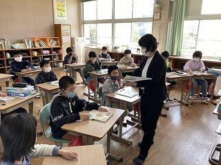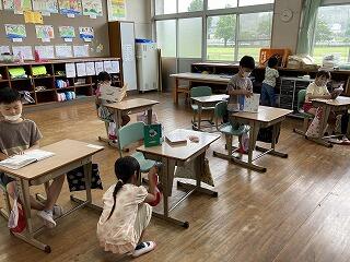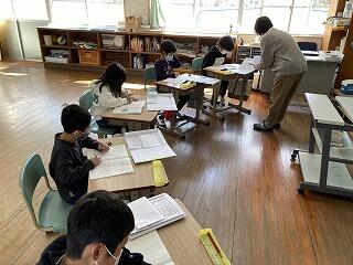 1年生は、国語の読み取り、2年生は、たし算・ひき算の筆算、3・4年生は、田植えの会の練習、5・6年生は、学活でむし歯予防について学習していました。
