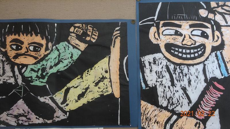 3・4年生の版画が仕上がりました。3年生は、始めて彫刻刀を使っての版画でしたのでずいぶんと苦労していました。頑張って仕上げた作品です。25日(木曜日)の参観日でじっくりと子ども達の作品を観てください。