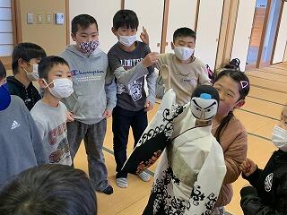 例年実施している人形浄瑠璃講演会は、今年は中止となりました。そこで、今までの子ども達の練習成果を発表する場と言うことで、保護者対象に発表会を行いました。子ども達は、発表をすることが出来て満足できたようです。