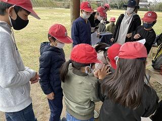 生活科のお勉強で1・2年生が学校周辺を見学し、交通標識や施設の場所・意味を知り、安全な生活について学習を行いました。