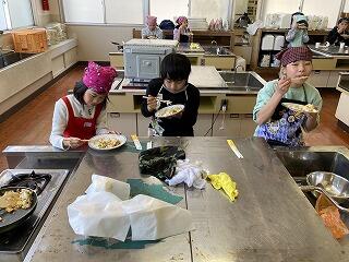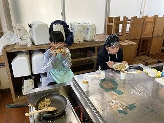 5・6年生が家庭科の調理実習でチャーハンとカップケーキを作りました。みんなとても上手でした。