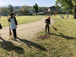 毎週、火曜日は、全校児童で朝のボランティアを行っています。今日は、落ち葉掃きをみんなで行いました。