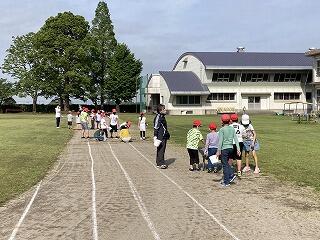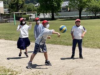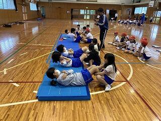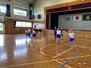1年生から6年生までの全児童で全校体育を行いました。ファミリー班ごとにみんなで楽しく体を動かしました。