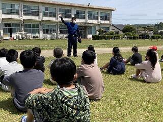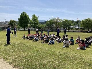 都城警察署の方々をお招きして不審者侵入対策の避難訓練を行いました。登下校時に気をつけること等も教えてもらいました。