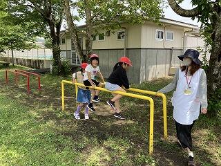 麓小学校の子ども達は、天気のいい日は、全員外に出て遊びます。それぞれ思い思いの遊びを楽しんでいます。