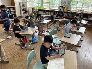 麓小にも一人一台のパソコンが届きました。算数で分度器の使い方を動画で見たり、漢字の練習をしたり、ローマ字入力の練習をしたりと頑張っています。