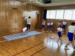 1・2年生が、跳び箱にチャレンジしていました。跳び箱は、踏切台で勢いよくジャンプすることが大切です。繰り返し練習して少しずつ飛ぶことが出来るようになってきました。跳べた時の表情、満足感でいっぱいです。