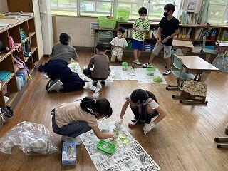 3・4年生の図工の時間の様子です。動物やお菓子、植物など個性豊かで素敵な発想が見られる作品がたくさんありました。