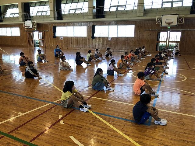 今日は、久しぶりに4年生以上が一緒になって活動するクラブ活動がありました。今夏は、ミニバレーでした。チーム一丸となってボールをつないでいました。