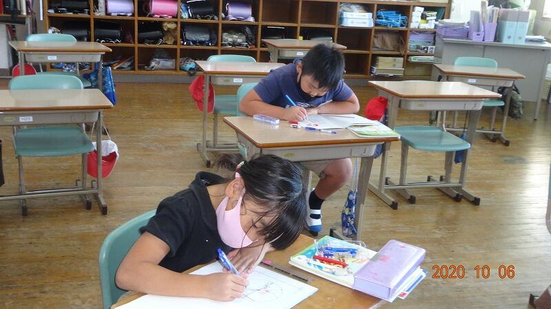 読書の秋です。そこで、2年生は読書後の感想画作成に取り組んでいます。心に残った場面を絵に表しています。代表作品は、作品展に応募します。
