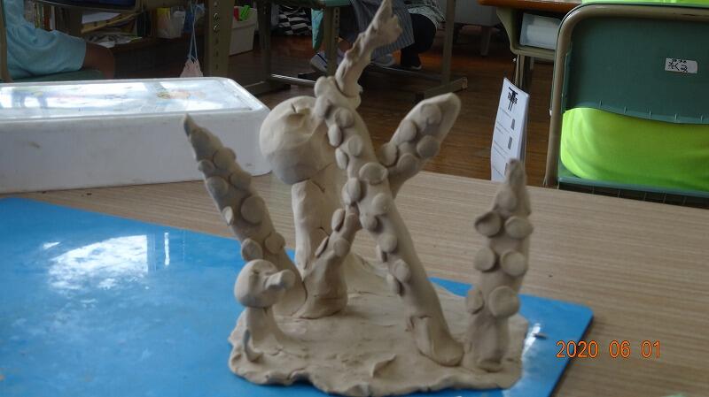 5・6年生の図工で、粘土を使って作品を作っています。作題は「なぞの入り口から」です。一人一人が思い思いにどんな所にいきたいか考えて、入り口を作っています。高学年でも、粘土細工は楽しそうでみんな集中して取り組んでいました。