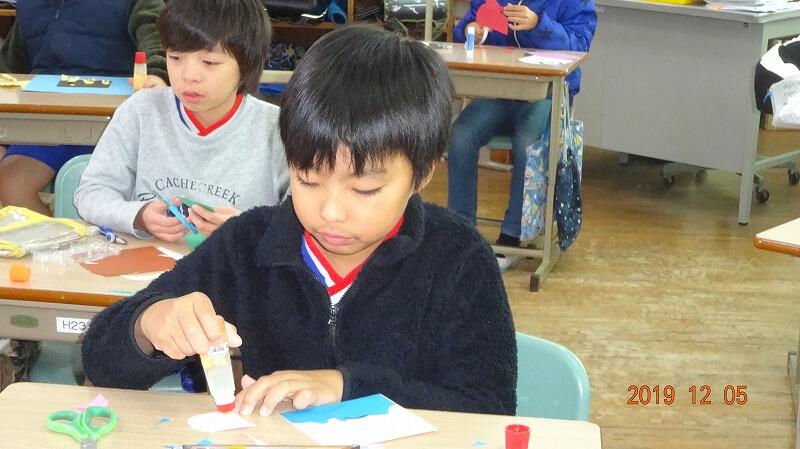 3・4年生の図工の時間です。自分の思いを自由に折り紙などを使って表現していました。自分の思いを表現するのは、なかなか難しいようでどうしようが悩んでいる人もいました。最後には、全員自分の作品を完成することができていました。