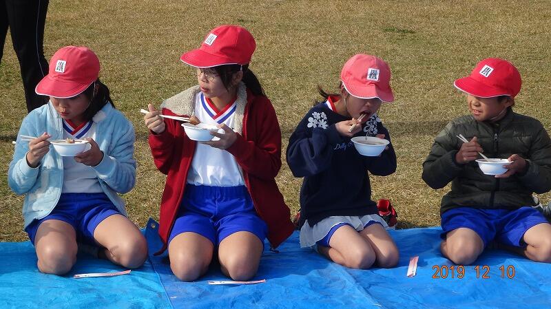 天気に恵まれ暖かい日和の下、持久走大会を実施しました。低・中・高学年に分かれて3レース行いました。今日のタイムは、ほとんどの児童が練習よりも良いタイムで走ることができました。やっぱり、保護者の応援があってのことです。全員が、完走することができたことがなによりです。持久走大会後は、麓ボランティア会の方々が作ってくださった「ぜんざい」を、児童・職員・保護者全員でいただきました。おかわりする児童もいて、とてもおいしかったです。
