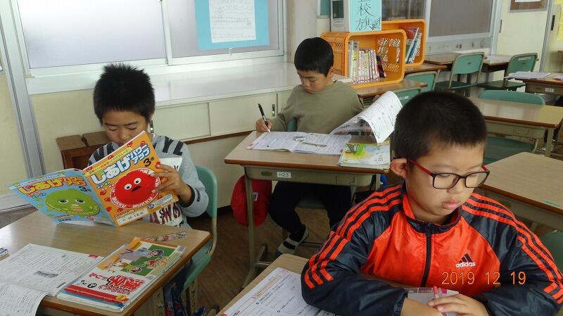 冬休みまで残り4日。2学期のまとめをする時期となりました。どの教室も、プリントやドリルなどの問題を解いていました。今、学習している内容しっかりと理解しておきたいですね。