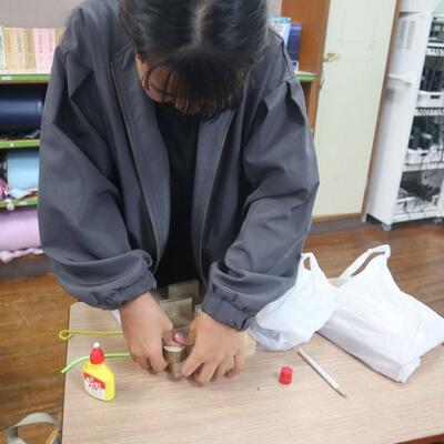地域の方をゲストティーチャーに迎えての木工作品づくり2回目です。1回目は、地域の方の糸のこぎりの使い方を見て学ぶ時間でしたが、今回は子どもたちも積極的に糸のこぎりを使用しました。また、地域の方に自分からすすんでたずねて、作り方を教えていただく場面もたくさんありました。作品も形になってきています。あと1回、地域の方と一緒に行い、作品を完成させる予定です。