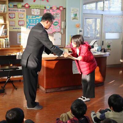 全校児童で迎えることができた終業式。1年生、3年生代表作文は、2学期に頑張ったことへの気持ちが素直な表現で表されていました。その気持ちにとても共感しました。校長先生も大きな行事がたくさんあった2学期の麓っ子の頑張りについてのお話でした。そして、2学期にたくさん本を借りて読んだ多読賞や作品展の表彰も行われました。過ぎてしまうとあっという間ですが、1日1日、様々なことに目標を立て、自分の成長のために取り組んだ32名でした。楽しい冬休みは、元気で安全に過ごしてほしいと担当の先生のお話もありました。3学期はまとめの時期ともいわれます。2学期以上の活躍が見られるでしょう。楽しい冬休みを過ごしてください。