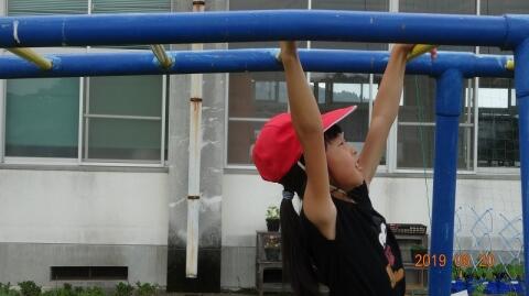 今日の天気は晴れ。子どもたちは昼休み元気に運動場で遊んでいます。運艇では、女の子たちがぶら下がって遊んでいます。元気よく外で遊ぶ子どもたち。本当に楽しそうです。