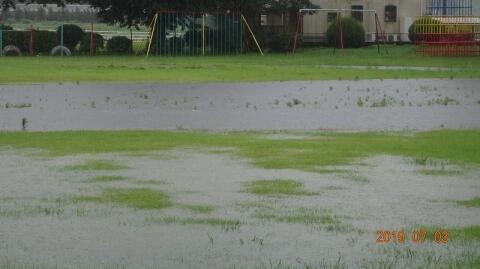 今日(7月3日)に続き、明日(7月4日)も臨時休業となりました。学校の運動場も水浸しとなっています。避難指示も出ています。最新の情報を確認してください。