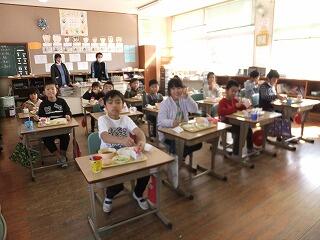 そして、1月23日(水)業間の時間に、山之口学校給食センターの所長さんと栄養士の先生をお招きして、「給食感謝集会」を行いました。栄養士の先生が、映像を見せながら、給食が作られるまでのお話をしていただいたり、児童代表が感謝のお手紙を読んだりしました。