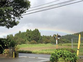 5日(金)は、台風接近のため心配でしたが、1時間目の休み時間に、校舎裏ににじが見えました。とても近くて、きれいな半円で、今にも手が届きそうな所で、子ども達は大喜び!!